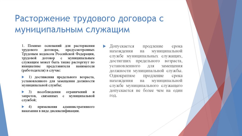 Расторжение трудового договора смуниципальным служащим