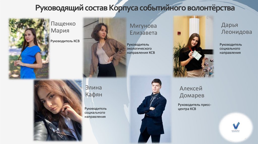 Руководящий состав Корпуса событийного волонтёрстваПащенко