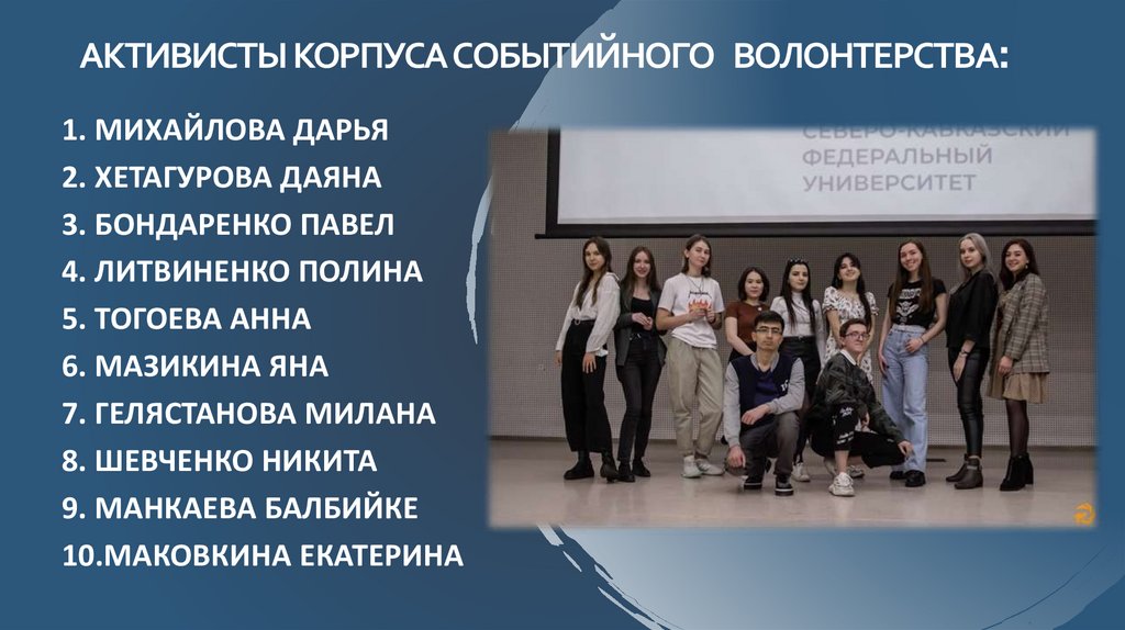 АКТИВИСТЫ КОРПУСА СОБЫТИЙНОГО ВОЛОНТЕРСТВА:1. МИХАЙЛОВА ДАРЬЯ