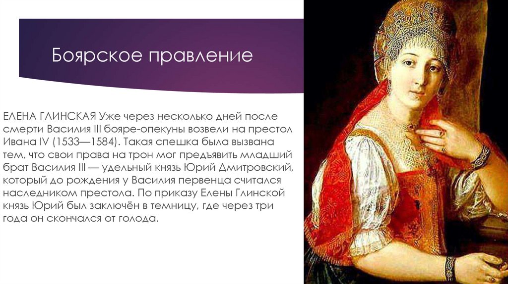 Боярское правлениеЕЛЕНА ГЛИНСКАЯ Уже через несколько дней после