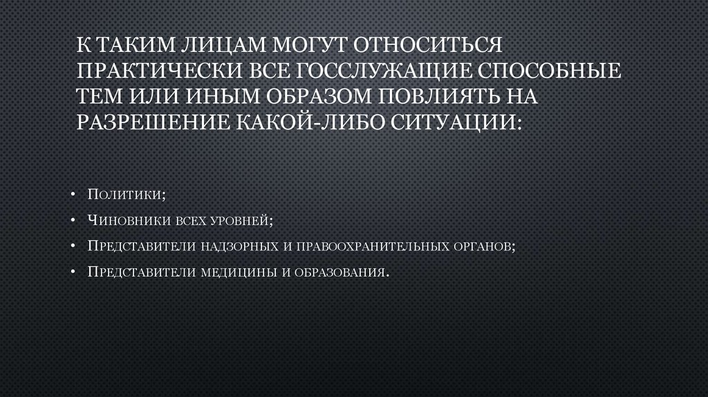 • ЧИНОВНИКИ ВСЕХ УРОВНЕЙ;