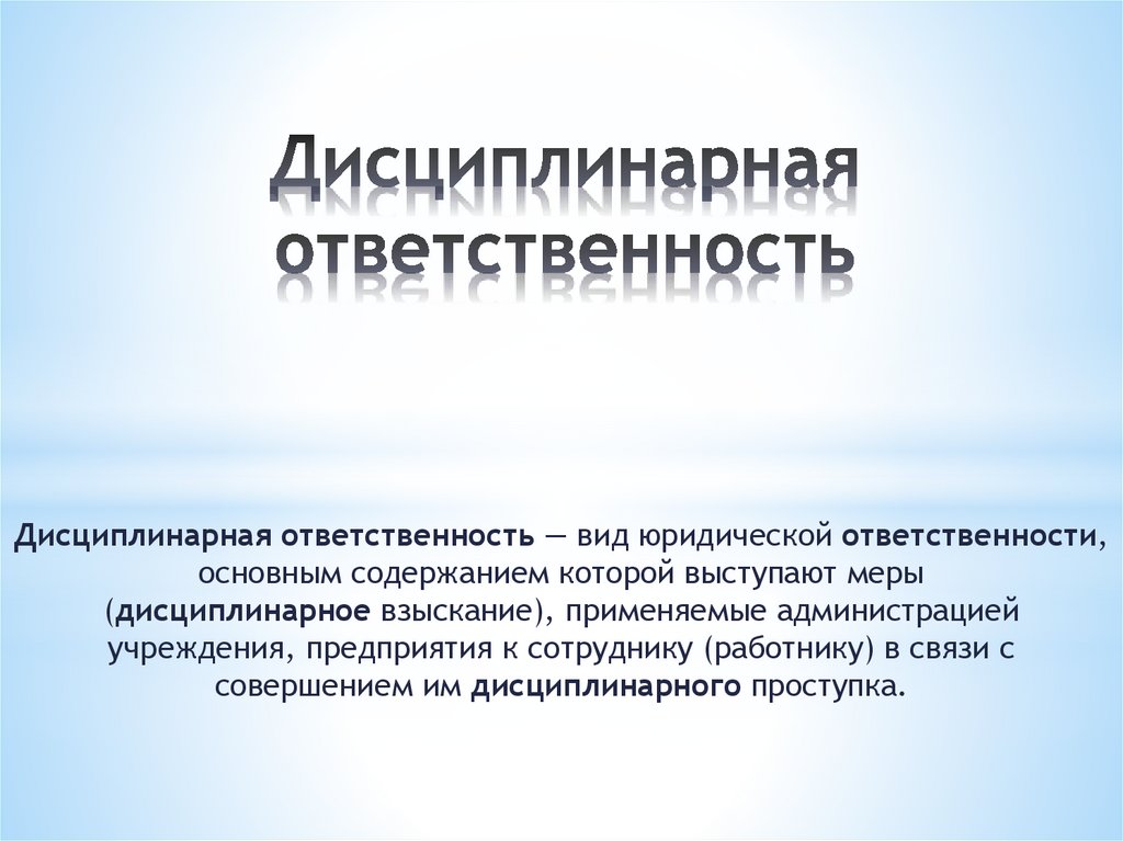 Дисциплинарная ответственность — вид юридической ответственности,основным содержанием которой выступают меры