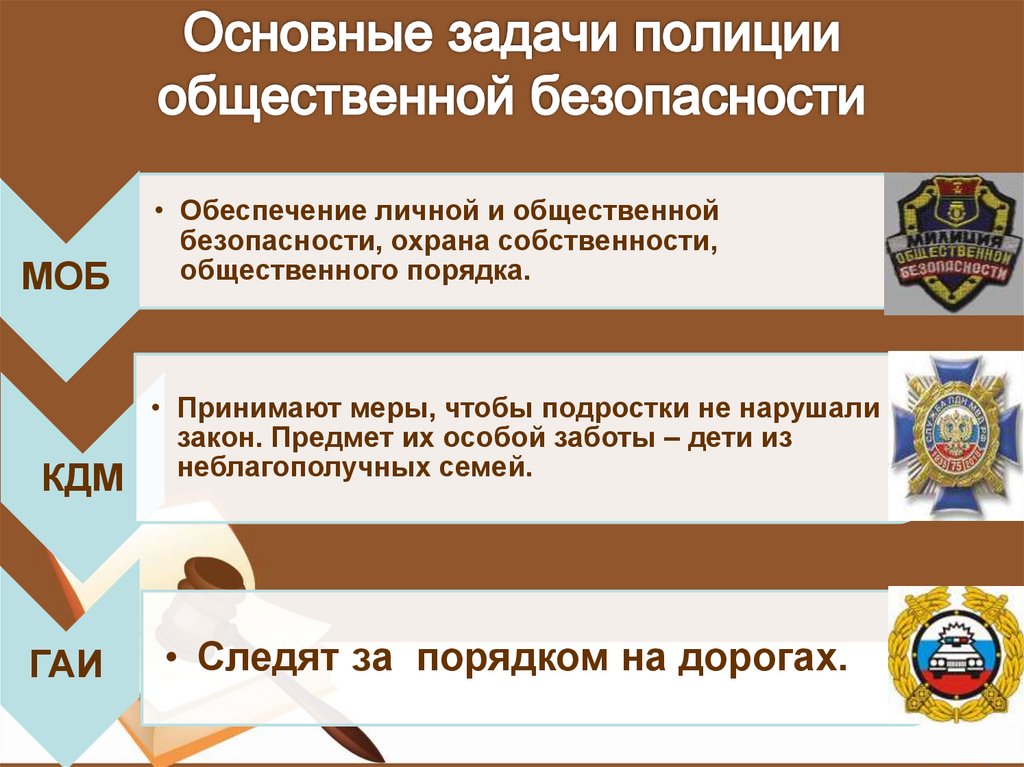 Их назначение – борьба справонарушениями, защита правопорядка,
