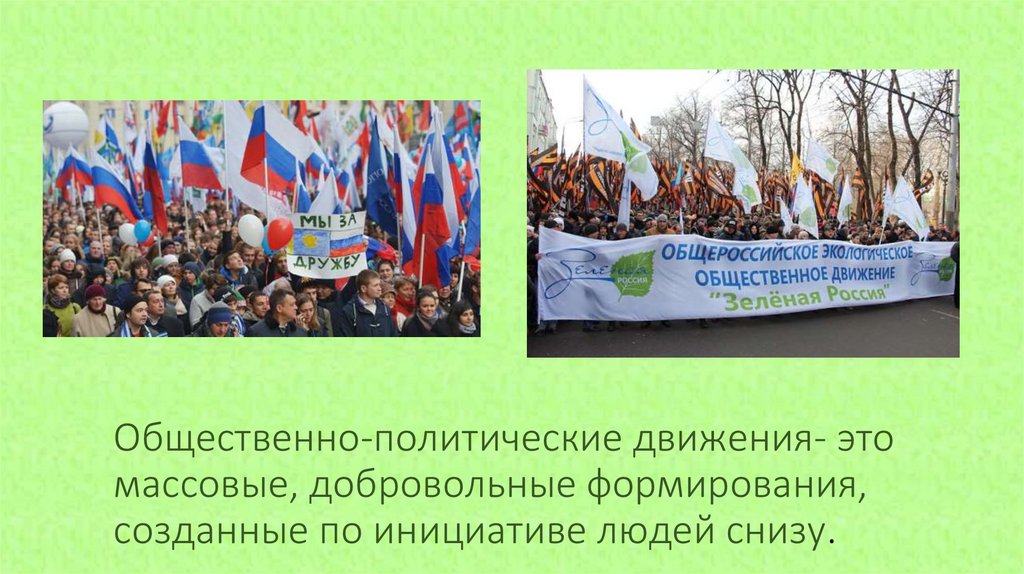 Общественно-политические движения- этомассовые, добровольные формирования,