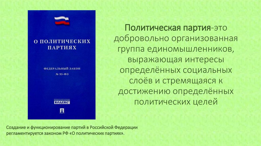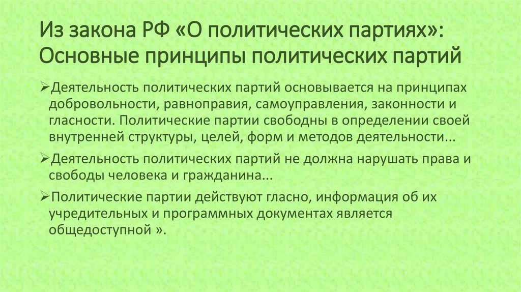 Из закона РФ «О политических партиях»:Основные принципы политических партий