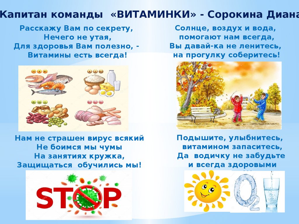 Капитан команды «ВИТАМИНКИ» - Сорокина ДианаРасскажу Вам по секрету,