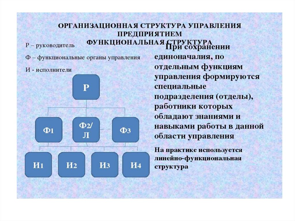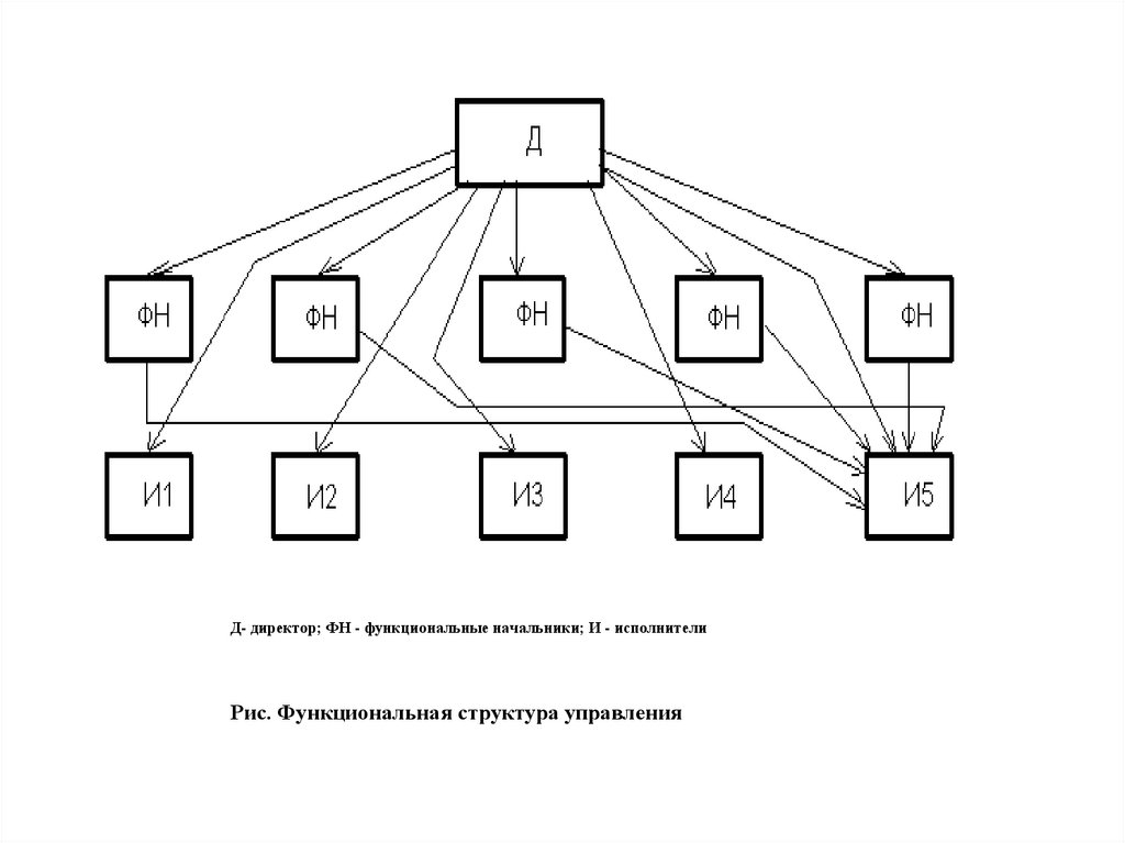Д- директор; ФН - функциональные начальники; И - исполнителиРис. Функциональная структура управления