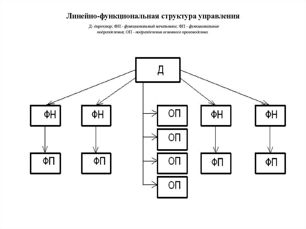 Линейно-функциональная структура управленияД- директор; ФН - функциональный начальники; ФП - функциональные