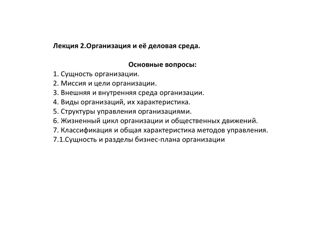 Лекция 2.Организация и её деловая среда.Основные вопросы:
