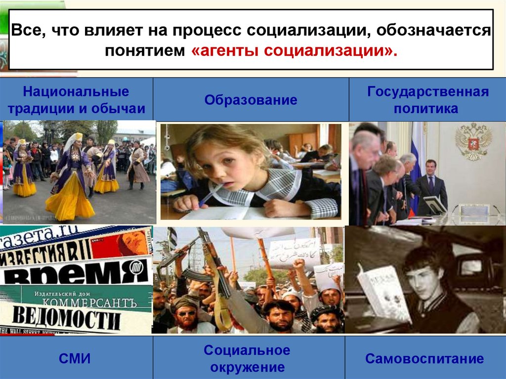 Все, что влияет на процесс социализации, обозначаетсяпонятием «агенты социализации».