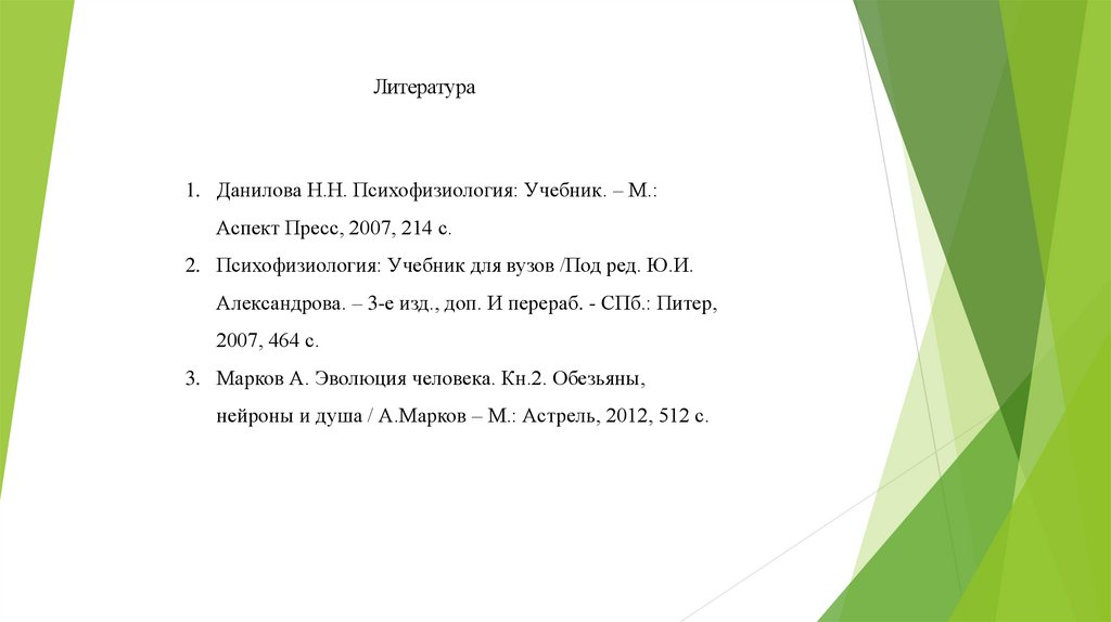 Литература1. Данилова Н.Н. Психофизиология: Учебник. – М.: