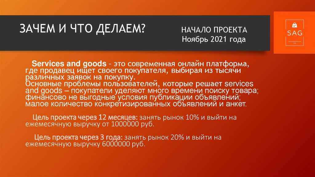 Цель проекта через 12 месяцев: занять рынок 10% и выйти на
