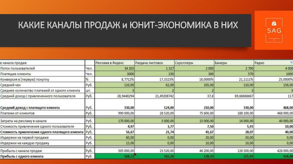КАКИЕ КАНАЛЫ ПРОДАЖ и ЮНИТ-ЭКОНОМИКА В НИХ9.