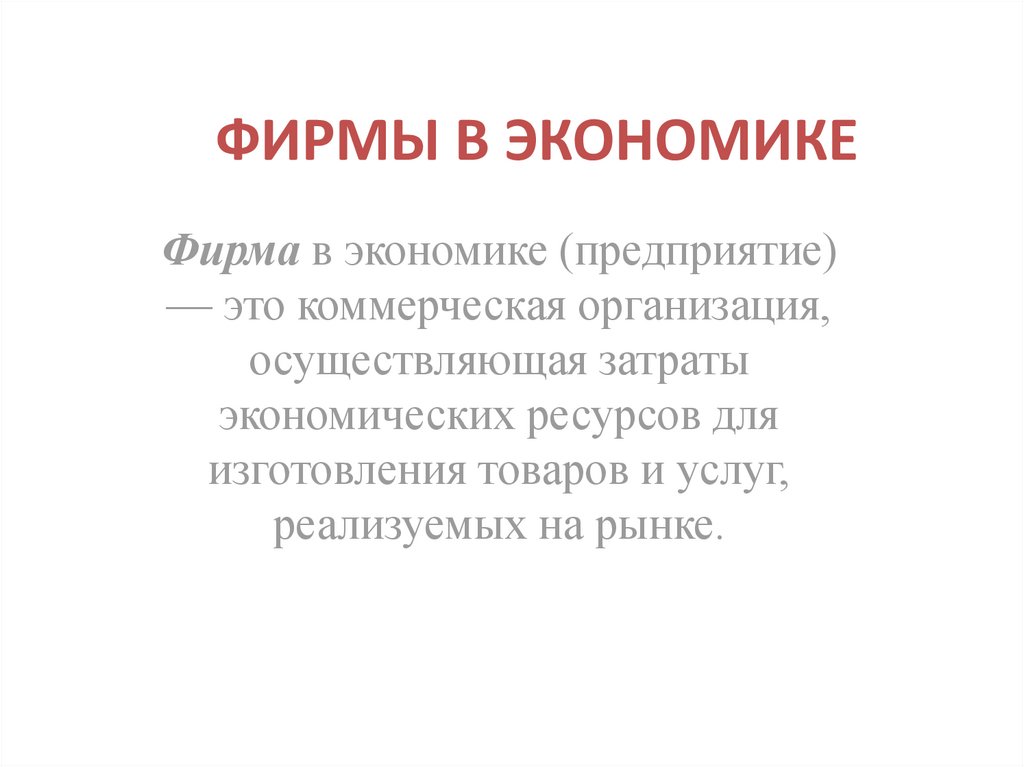 ФИРМЫ В ЭКОНОМИКЕФирма в экономике (предприятие)