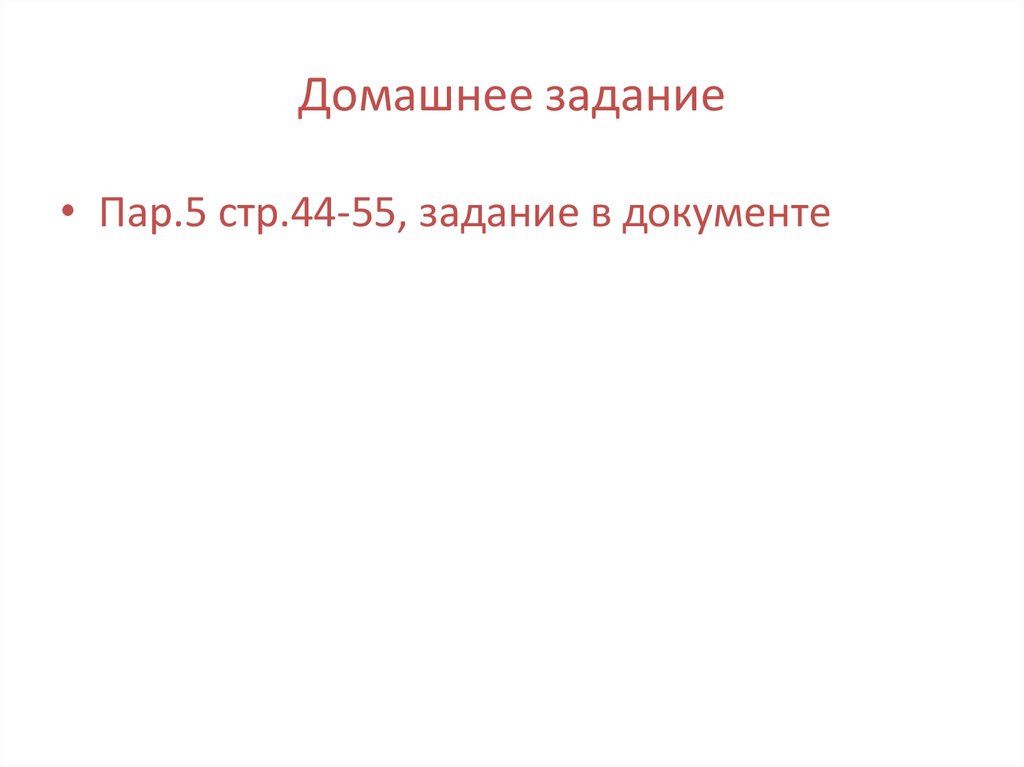 Домашнее задание• Пар.5 стр.44-55, задание в документе