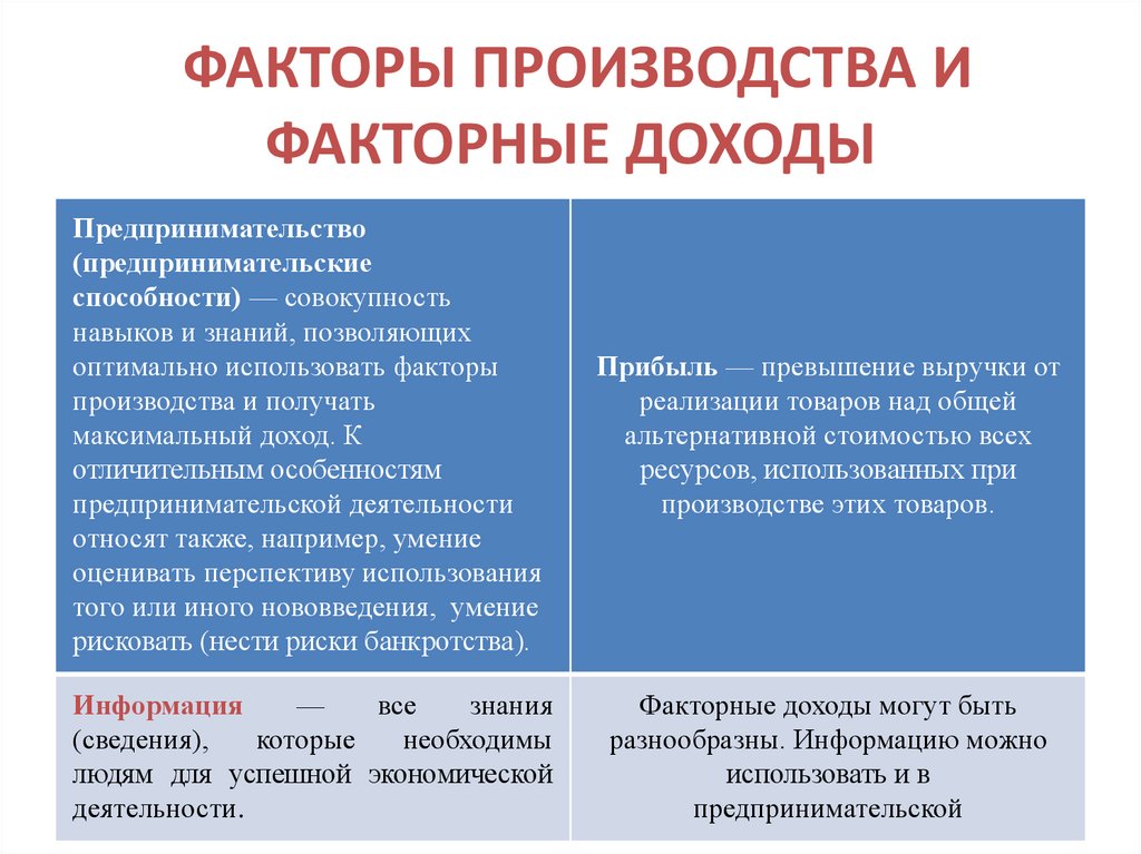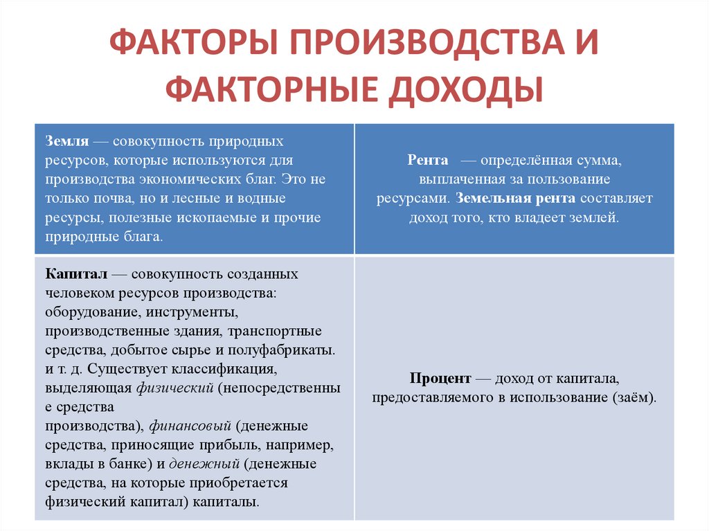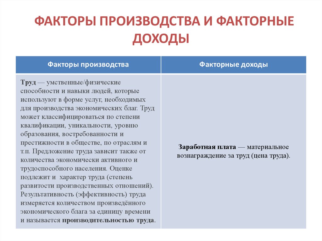 ФАКТОРЫ ПРОИЗВОДСТВА ИФАКТОРНЫЕ ДОХОДЫ
