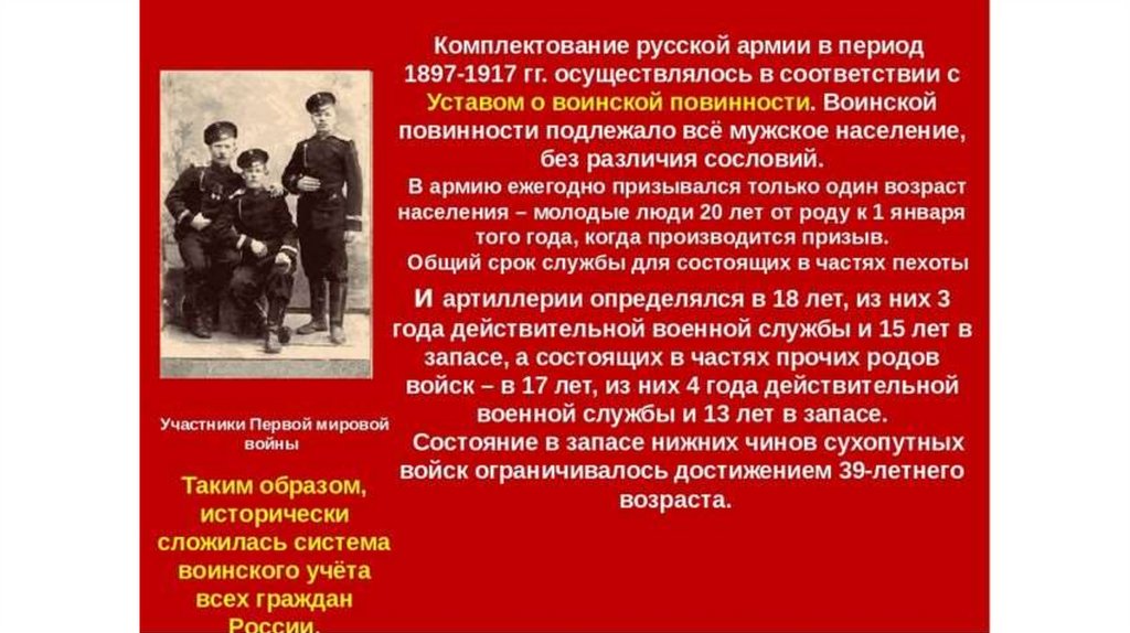 службы в армии составлял от 3 до 5 лет. После истечения срока службы,