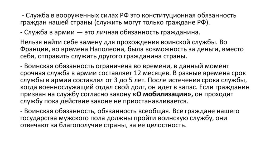 - Воинская обязанность, обязанность всеобщая. Все граждане нашего