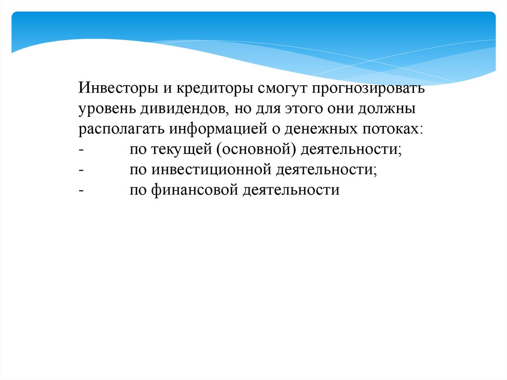Инвесторы и кредиторы смогут прогнозироватьуровень дивидендов, но для этого они должны