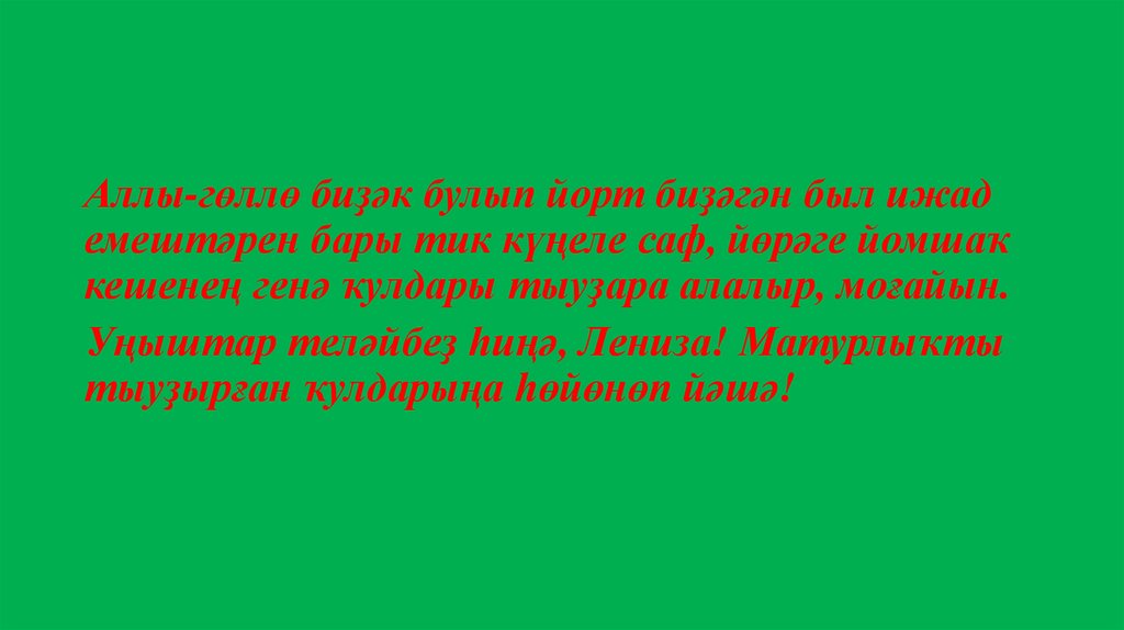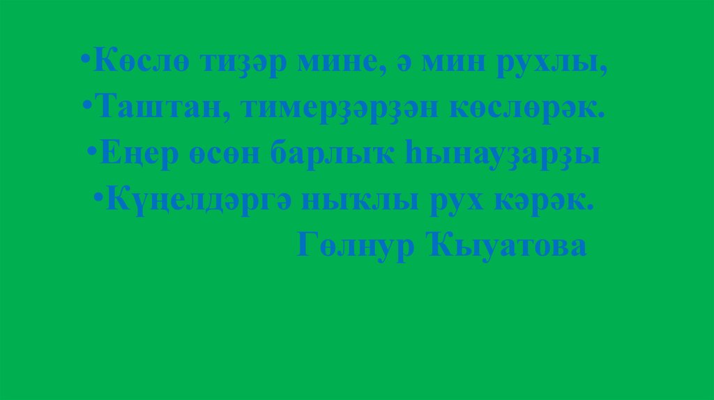 •Көслө тиҙәр мине, ә мин рухлы,•Таштан, тимерҙәрҙән көслөрәк.