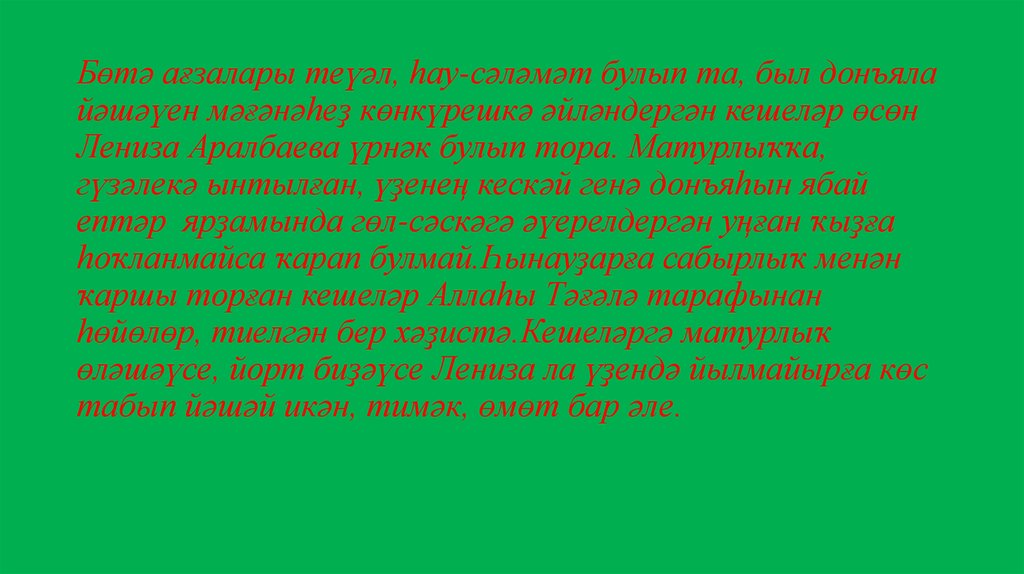 Лениза Аралбаева үрнәк булып тора. Матурлыҡҡа,