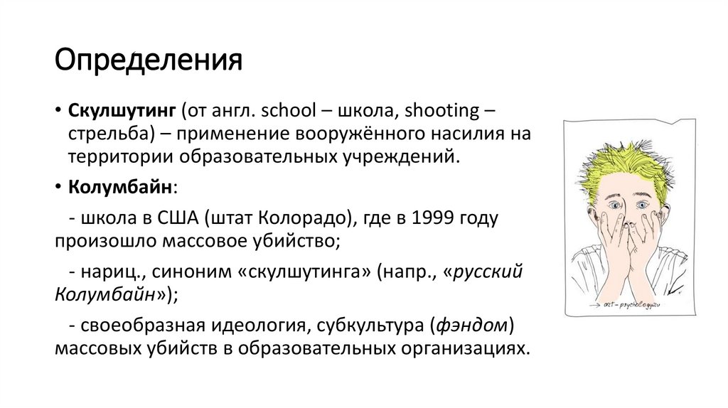 Определения• Скулшутинг (от англ. school – школа, shooting –