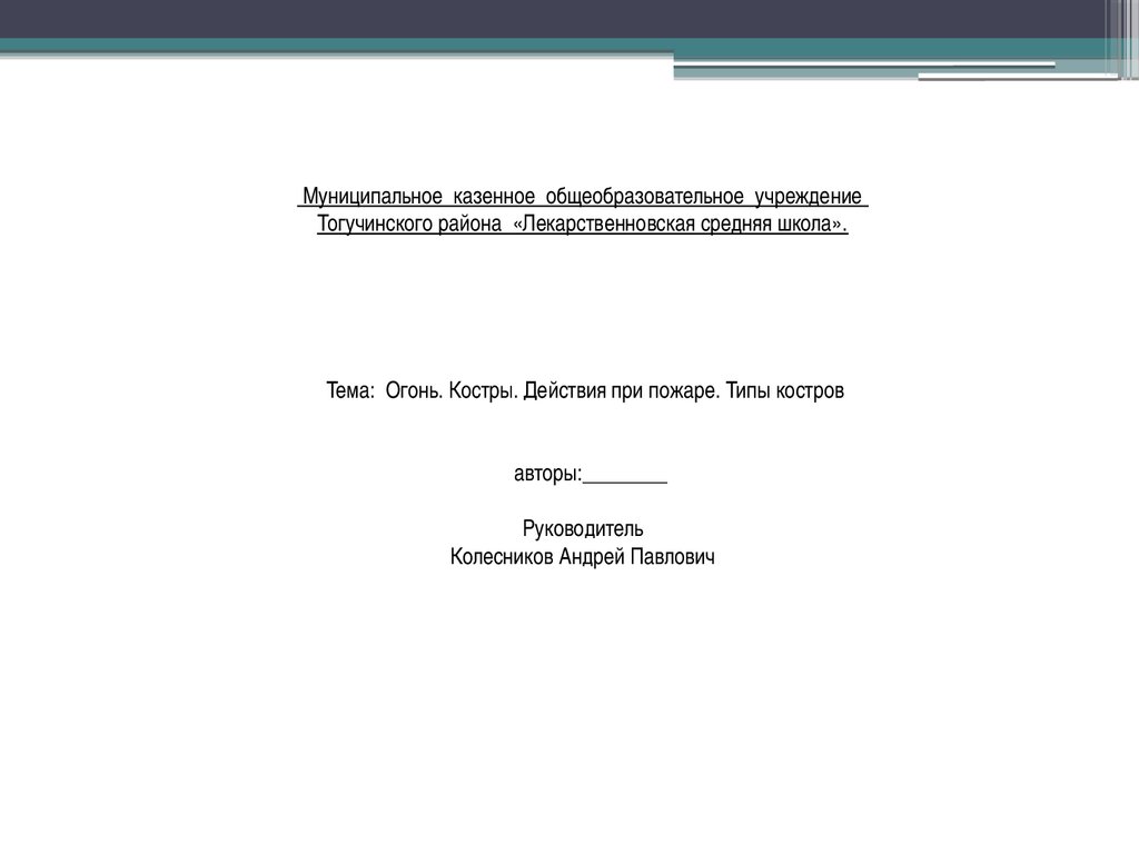 Муниципальное казенное общеобразовательное учреждениеТогучинского района «Лекарственновская средняя школа».