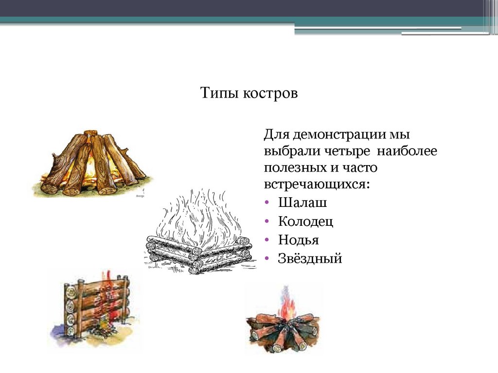 Типы костровДля демонстрации мы
