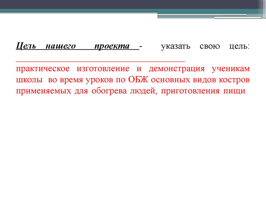 Цель нашегопроекта указать свою цель: