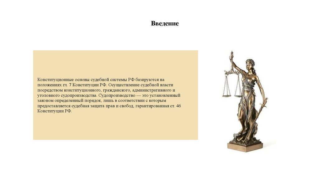 положениях гл. 7 Конституции РФ. Осуществление судебной власти