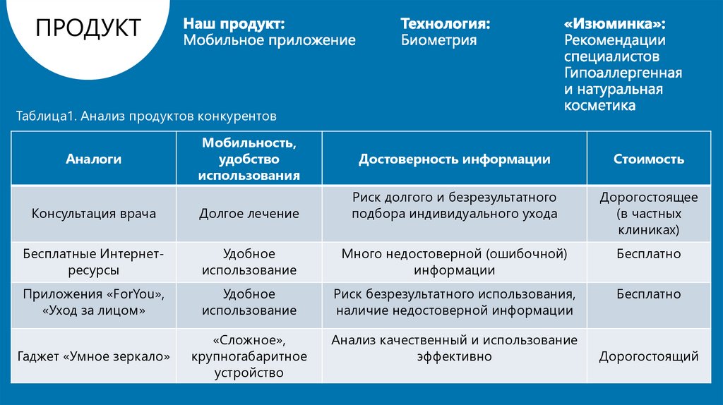 ПРОДУКТТаблица1. Анализ продуктов конкурентов