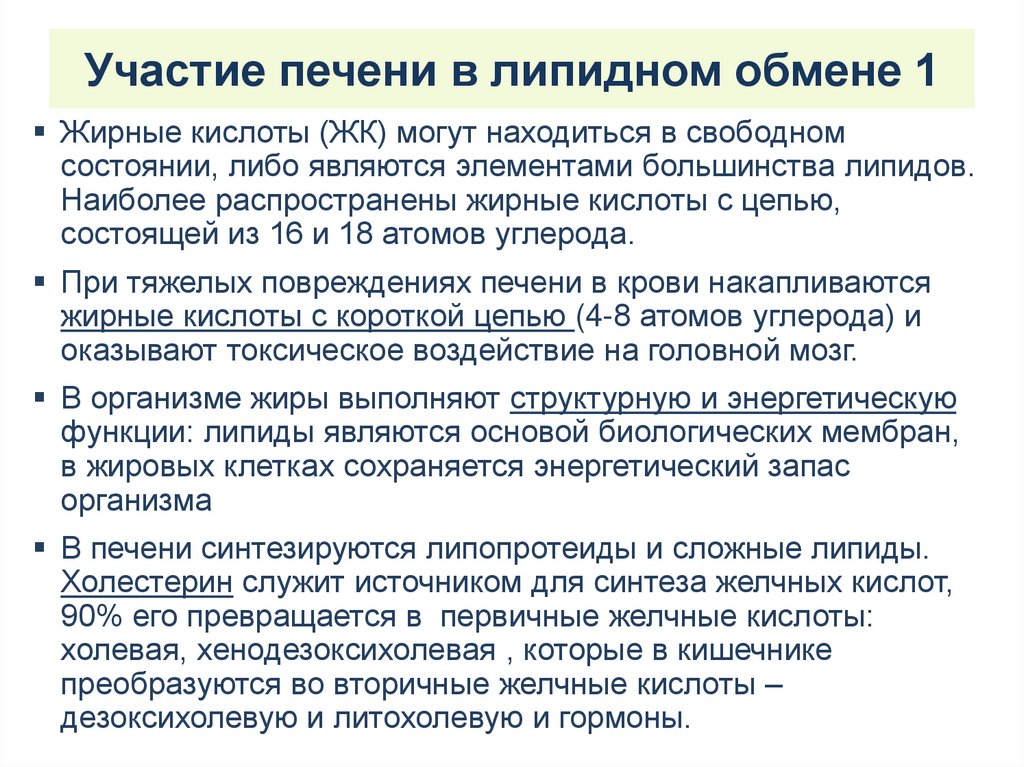 Участие печени в липидном обмене 1Жирные кислоты (ЖК) могут находиться в свободном