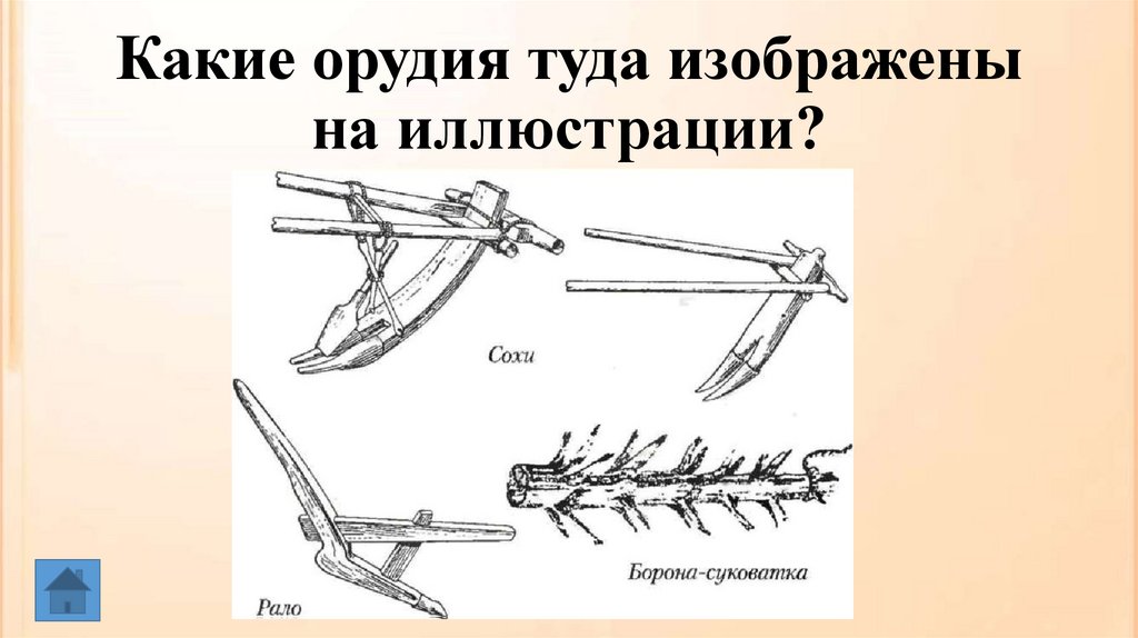 Какие орудия туда изображенына иллюстрации?