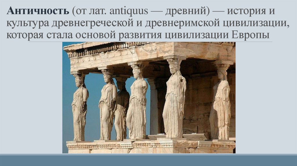 Античность (от лат. antiquus — древний) — история икультура древнегреческой и древнеримской цивилизации,