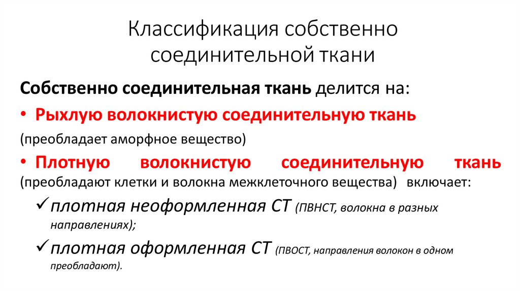 Классификация собственносоединительной ткани