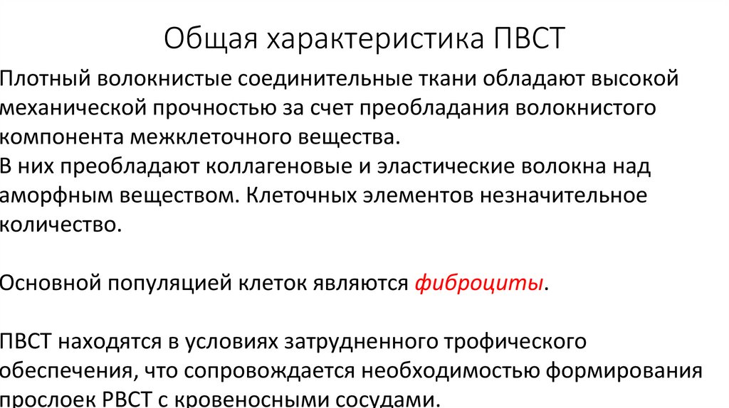 Общая характеристика ПВСТПлотный волокнистые соединительные ткани обладают высокой