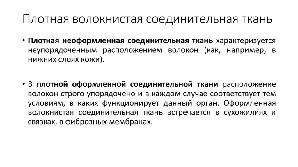 Плотная волокнистая соединительная ткань• Плотная неоформленная соединительная ткань характеризуется