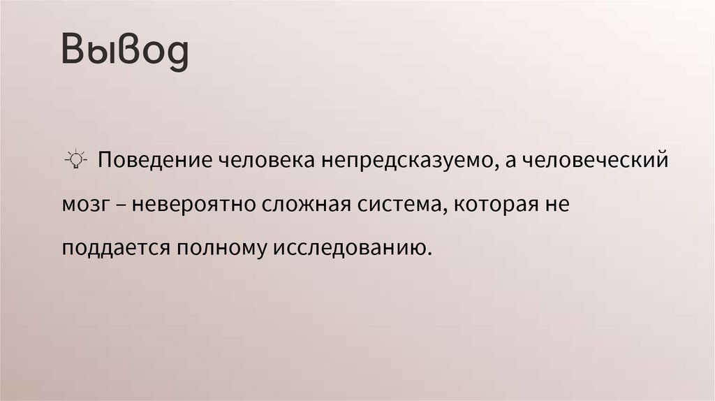 ВыводПоведение человека непредсказуемо, а человеческий