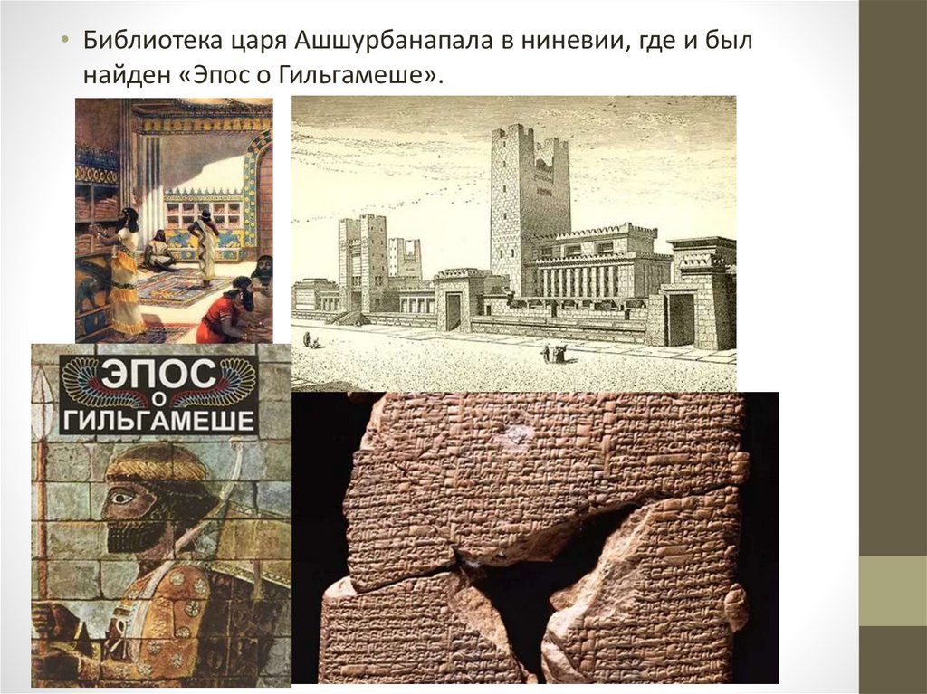 • Библиотека царя Ашшурбанапала в ниневии, где и былнайден «Эпос о Гильгамеше».