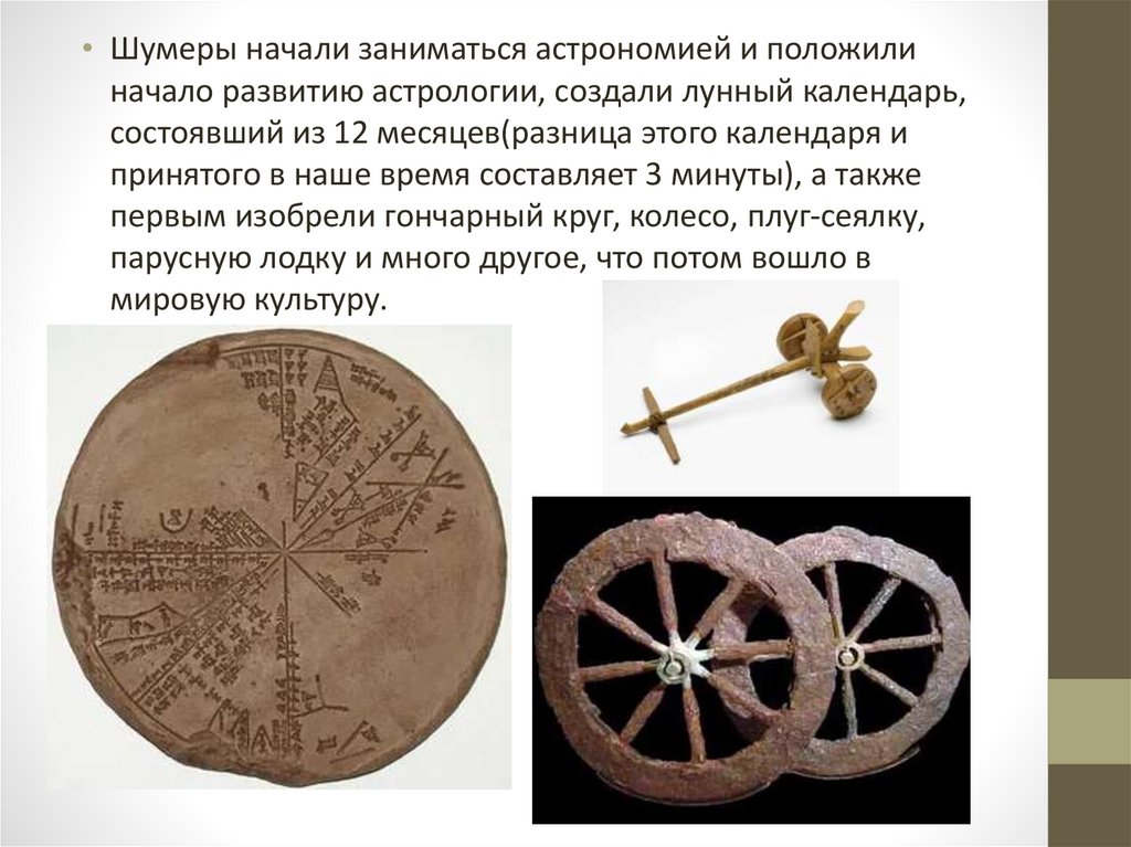 первым изобрели гончарный круг, колесо, плуг-сеялку,