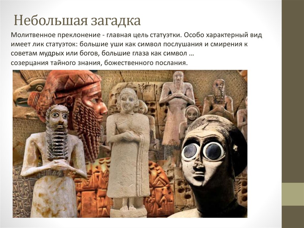 Небольшая загадкаМолитвенное преклонение - главная цель статуэтки. Особо характерный вид