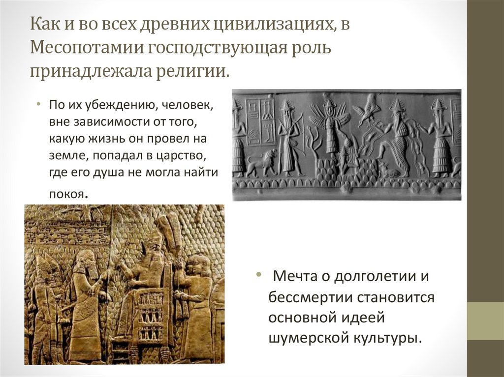 Как и во всех древних цивилизациях, вМесопотамии господствующая роль