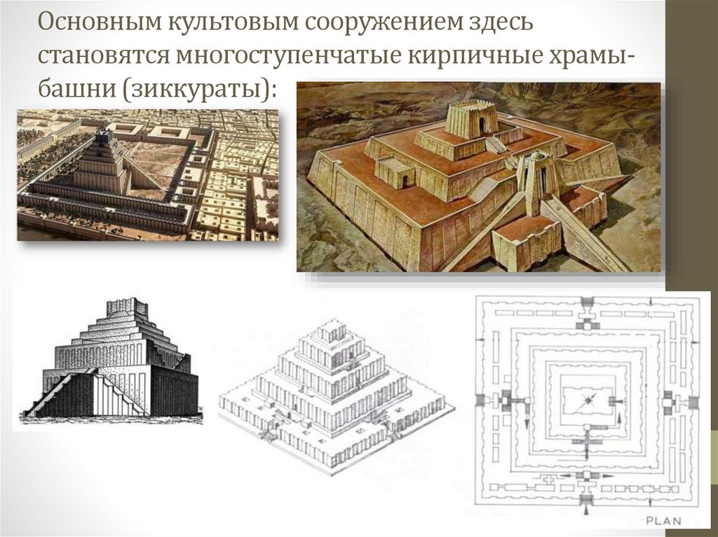 Основным культовым сооружением здесьстановятся многоступенчатые кирпичные храмыбашни (зиккураты):