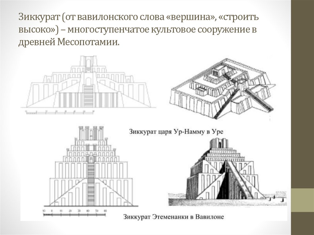 Зиккурат (от вавилонского слова «вершина», «строитьвысоко») – многоступенчатое культовое сооружение в