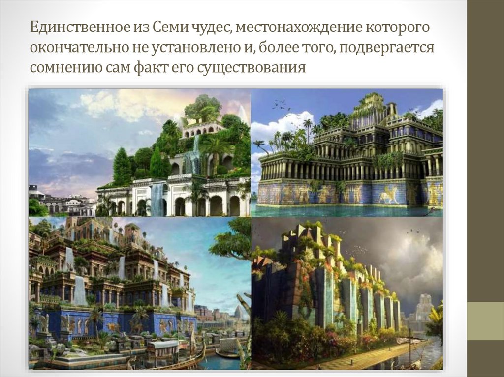 Единственное из Семи чудес, местонахождение которогоокончательно не установлено и, более того, подвергается
