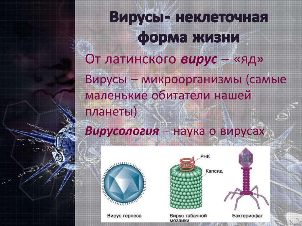 От латинского вирус – «яд»Вирусы – микроорганизмы (самые