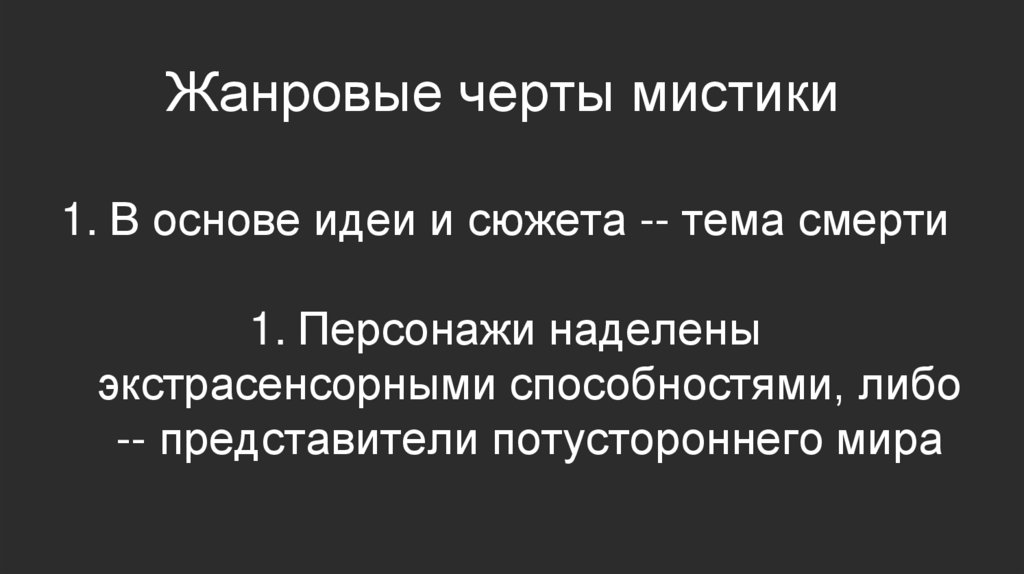 Жанровые черты мистики1. В основе идеи и сюжета -- тема смерти