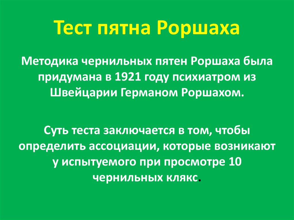 Тест пятна РоршахаМетодика чернильных пятен Роршаха была