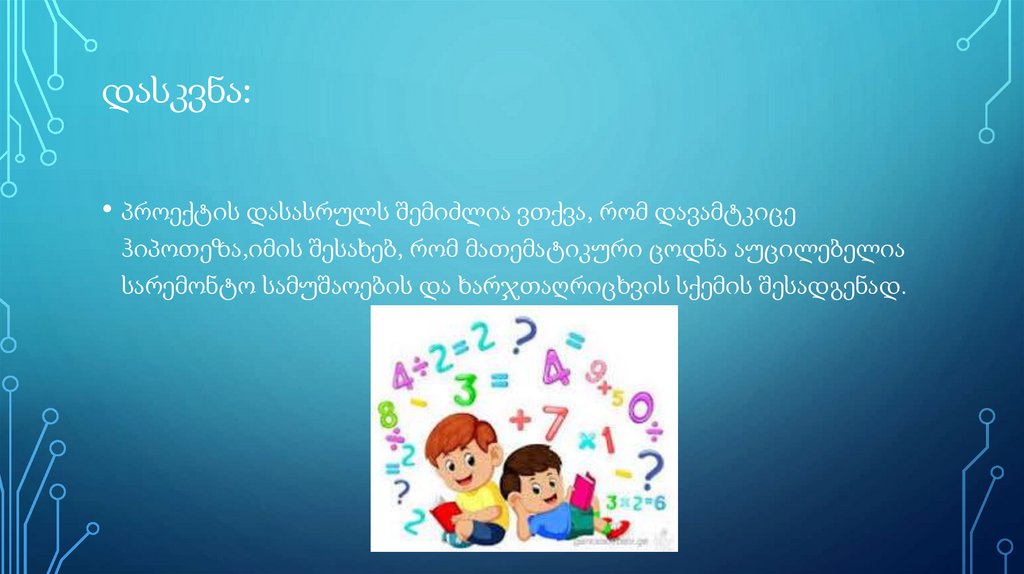 პროექტის მიზანი:მიღებული მათემატიკური ცოდნის გამოყენებით