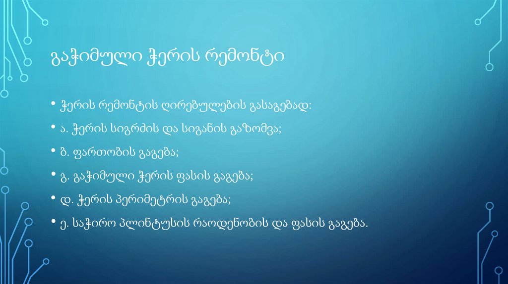 სარემონტო სამუშაოების და ხარჯთაღრიცხვის სქემის შესადგენად.